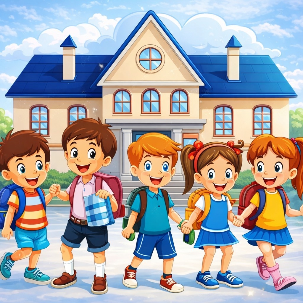 School BuildingĀ Montessari Kids with Abacus Painting Competition Saraswati Statue in Mandir Admissions Open